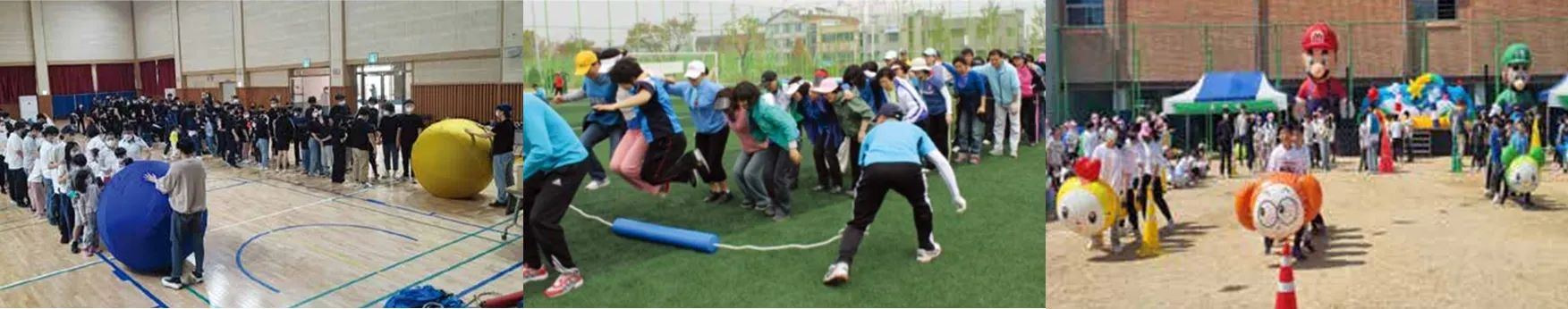 큰공굴리기: 팀원들이 협력하여 큰 공을 굴리는 게임